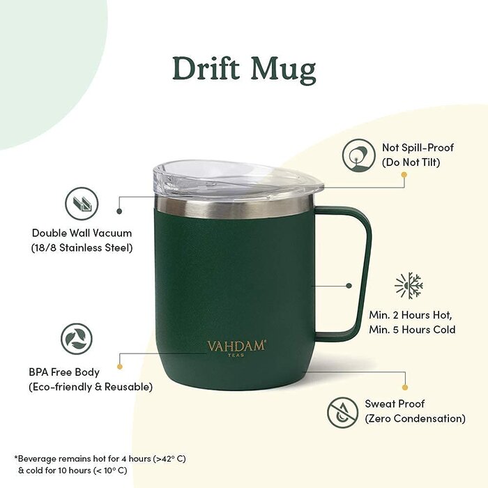 Introducing the Drift Mug, a revolutionary vessel designed to elevate your drinking experience. With its dual vacuum insulation, this mug keeps your beverages piping hot for up to 3 hours and refreshingly cold for a minimum of 6 hours, ensuring you can enjoy your drinks at the perfect temperature.
